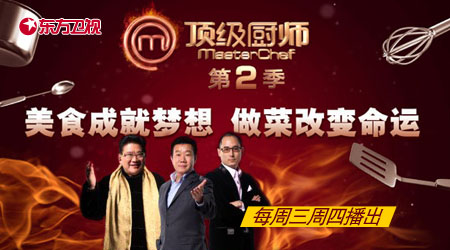东方卫视 《顶级厨师》 每周三周四播出《顶级厨师》是东方卫视2012年引进国外版权的优秀美食真人秀节目,也是中国首档美食真人秀节目。《顶级厨师第二季》有来自21座城市的4万多名烹饪爱好者报名参加。今年的品委阵容也更具专业性,在保留曹可凡、刘一帆之后,新加盟的梁子庚先生是中餐大师,也是当之无愧的世界最佳厨师之一。在保留《顶级厨师》经典节目环节神秘盒挑战、创意菜比拼、团队外景挑战、技巧测试、压力测试外,今年的节目环节更具看点。本周堪称第二季《顶级厨师》开赛以来最“残酷”的一周,共有三位美食爱好者离开。被品委称为做菜“很狠”的钟毓在“素鸭”环节落败,黯然脱下围裙;通过复活赛重回顶厨的蒋小康,又一次与顶厨说再见;上周踢馆成功的赵歆宇,本周却被一道拔丝泡芙塔打败,离开顶厨舞台。《顶级厨师》的比赛已经到了白热化的程度,下周《顶级厨师》现场又会有怎样的精彩,敬请关注!